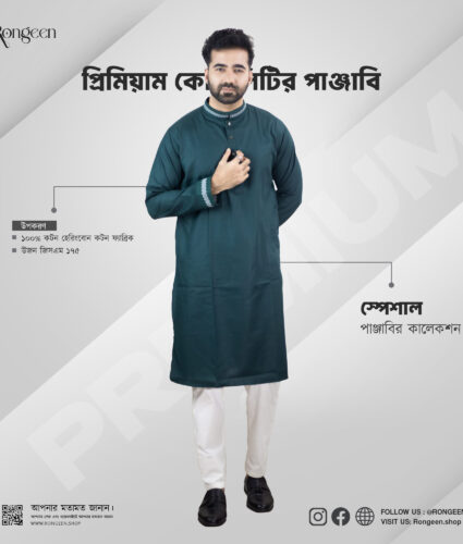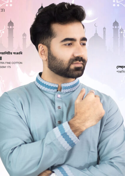 Ash Grey Premium Micro stitch Panjabi – Rongeen