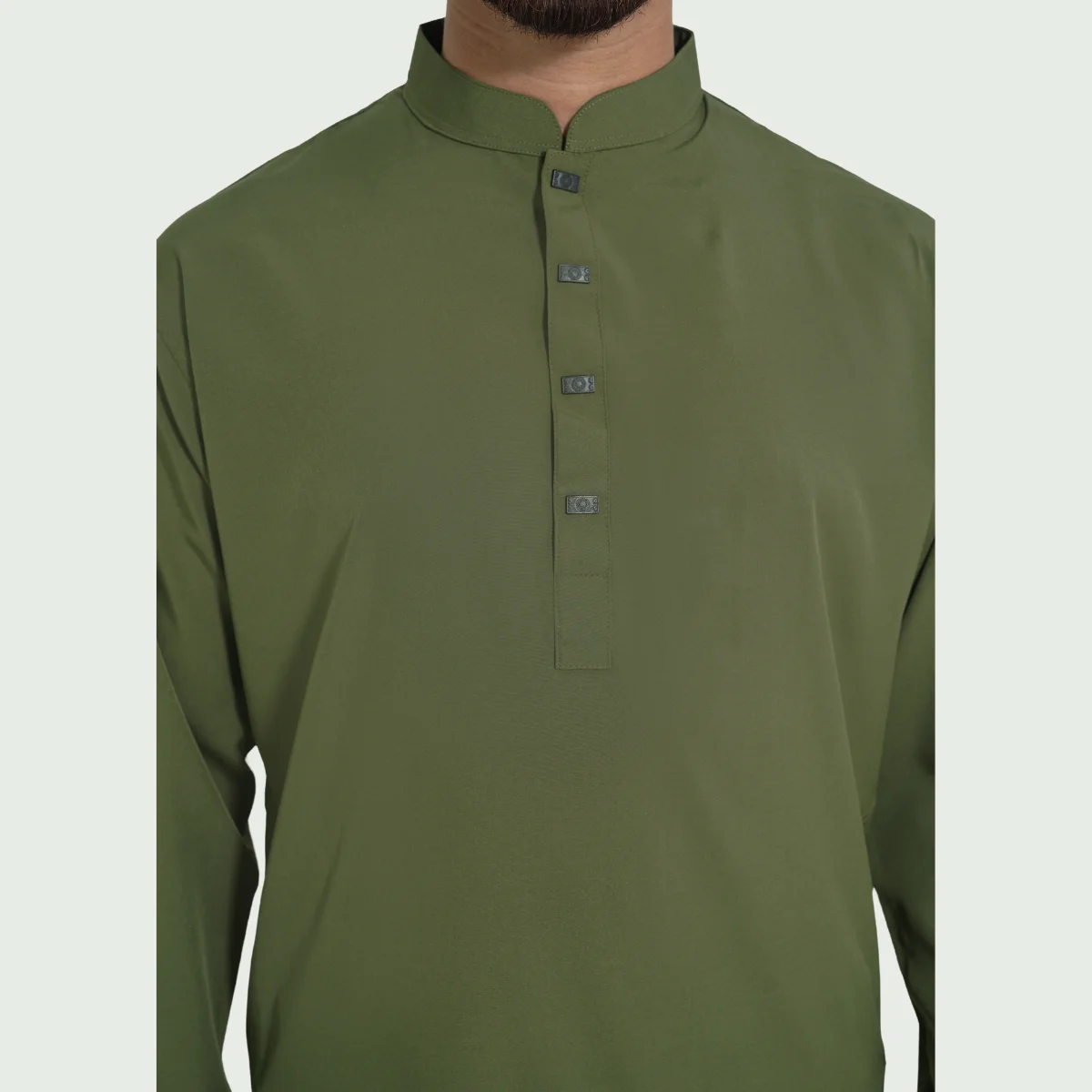 এই অলিভ কালারের প্রিমিয়াম মাইক্রোস্টিচ পাঞ্জাবিটি তৈরি করা হয়েছে উন্নতমানের নরম ও টেকসই কাপড়ে।